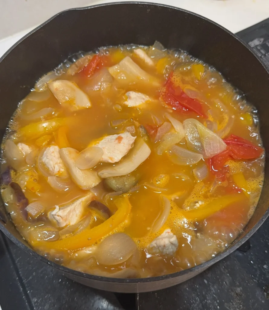 野菜の水分だけで煮込むので、栄養が逃げません。鶏胸肉が驚くほどしっとり仕上がります。